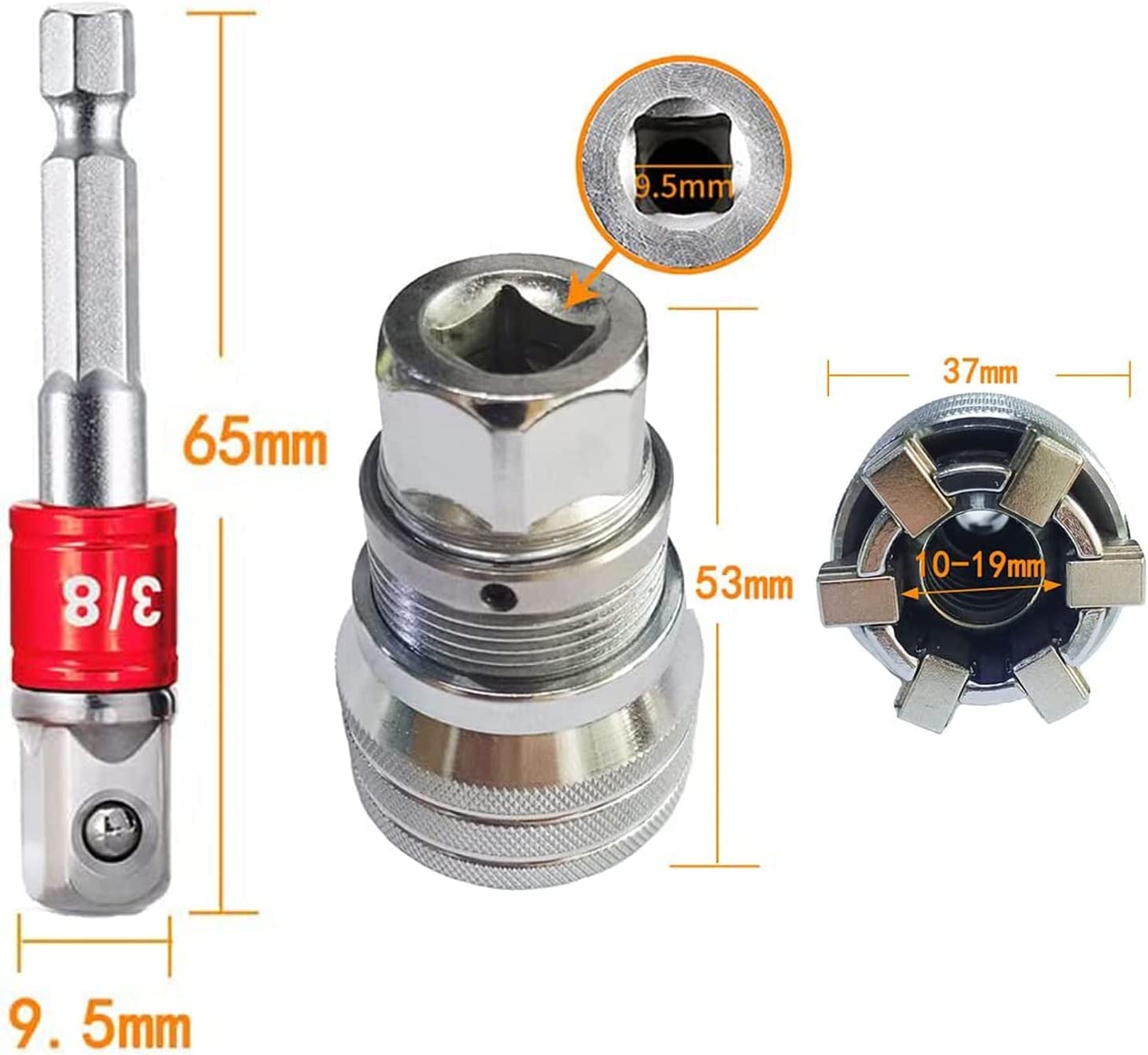 EDAT Clé à Douille Universelle 10-19mm - Pour Cliquet 3/8 Et Perceuse, Acier Vanadium, 2 Pièces